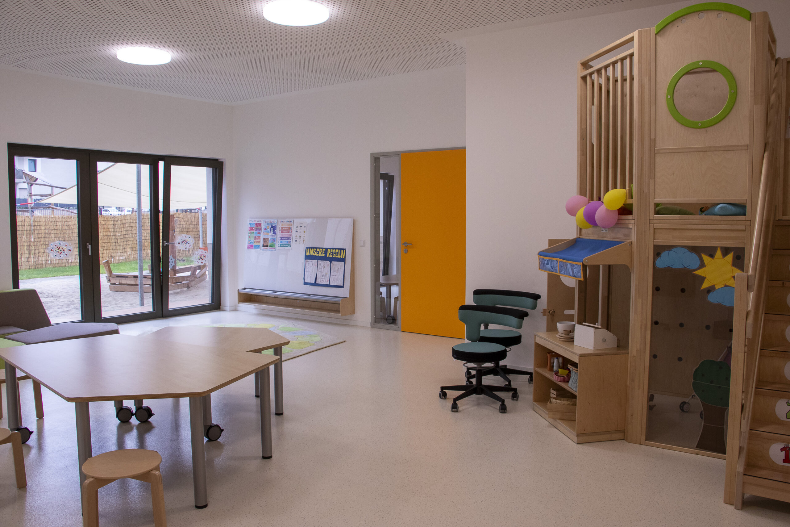 Öffnungszeiten: Ü3-Kinder Mo.-Fr. 7:30 Uhr bis 16:30 Uhr. U3-Kinder Mo.-Fr. 7:30 bis 16:30 Uhr